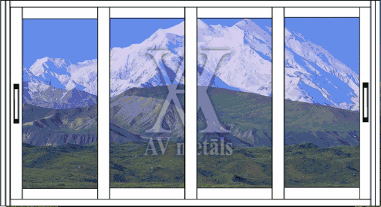 Sliding aluminum construction on 4 guides, 4 windows, opening 75%.Size of construction: 3 x 1.5 m