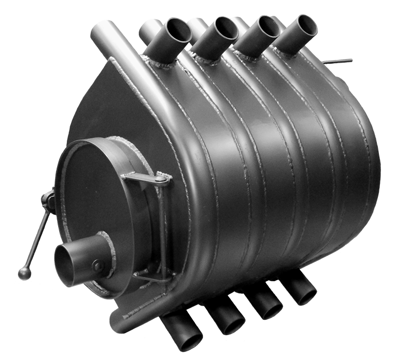 By choosing a stove with lower and upper headers, you get the opportunity to heat adjacent, isolated rooms (buildings with 2 or more rooms). The injected air enters the upper manifold, is distributed and delivered to the right room through the air ducts, the number of outlets for fixing the air ducts can be 2 and more