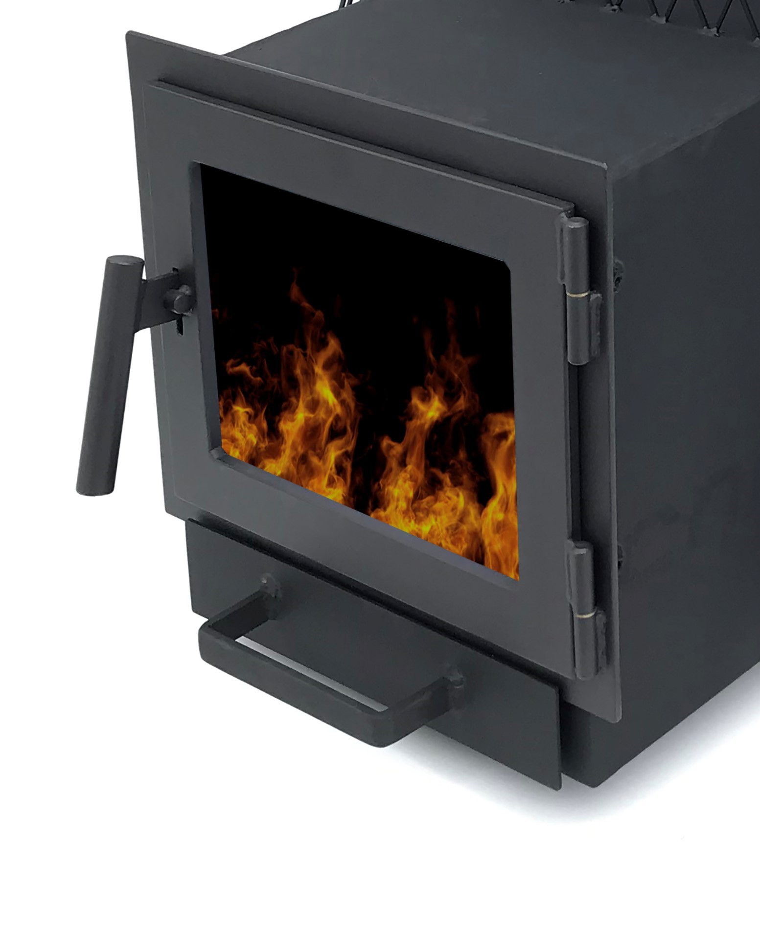 Sauna stove, grid for stones 4 sides 14-18 m / cu., Door with glass